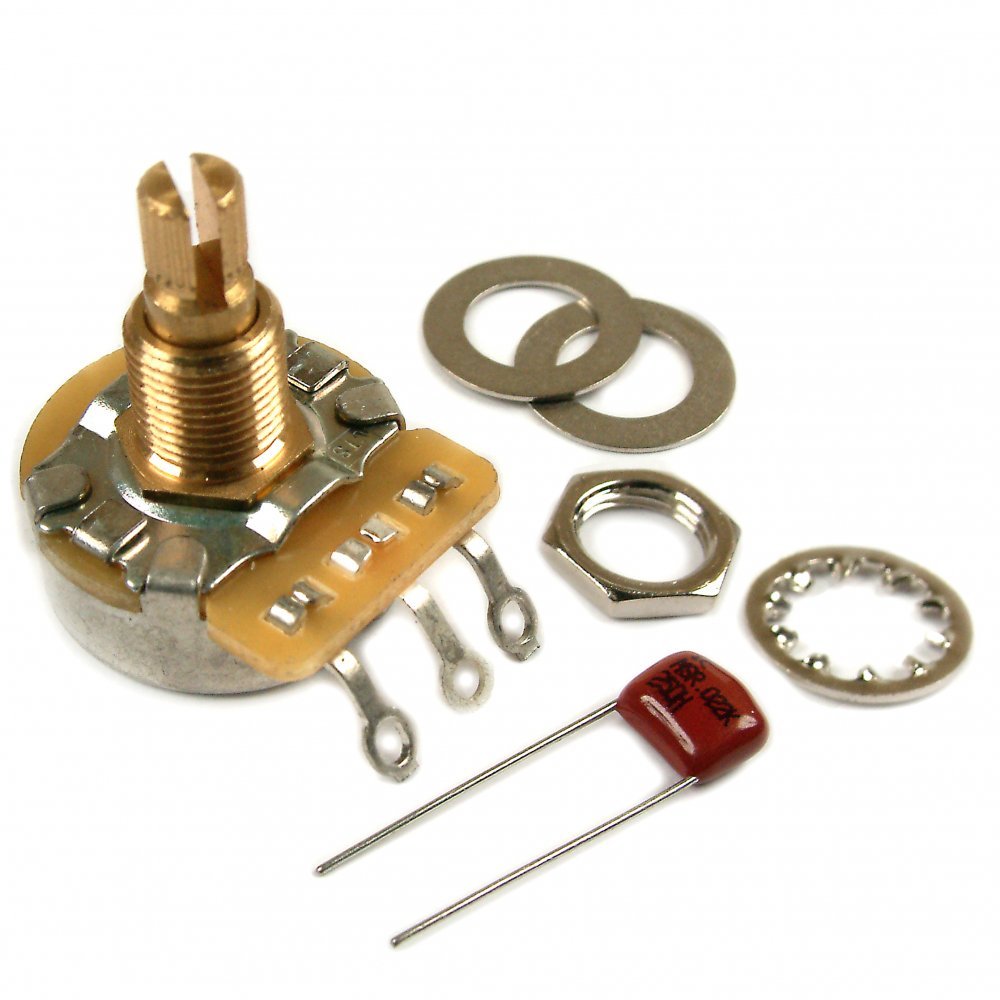 3/8インチのスプリットシャフト500Kポテンショメータ。 スプリットシャフトポテンショメータを搭載するUS製/メキシコ製のほぼすべてのフェンダー製楽器に、ボリューム/トーンコントロールとして使用可能です。 プッシュオン式コントロールノブ(止めネジなし)と併用。 取り付け用金具、0.022mf 250Vトーンキャパシタ付き。 ●500Kポット ●3/8インチのスプリットシャフトデザイン ●プッシュオン式コントロールノブと併用 ●取り付け用金具と.022mf 250Vトーンコンデンサー付き