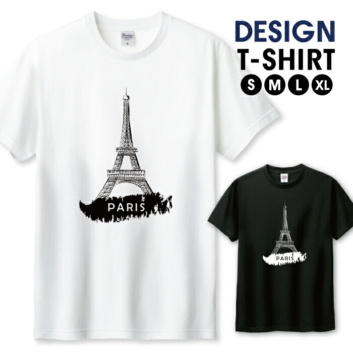 30%割引クーポン★ブラックフライデー★ Tシャツ メンズ ユニセックス PARIS エッフェル塔 フランス おしゃれ シンプル かっこいい サイズ S M L LL XL 半袖 綿 100% コットン 人気 ゆったり 白Tシャツ 黒Tシャツ ホワイト ブラック 長持ち プリ