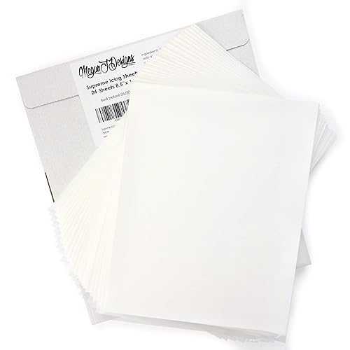 Supreme Icing Sheets 24 Pack Premium White Flexible Edible Frosting Printer Paper Cake Decoration 8.5" x 11" by MeganJDesigns