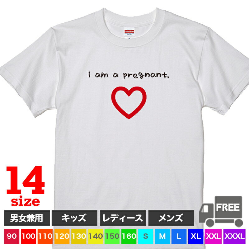 【送料無料 ポスト投函】I am a pregnant(ホワイト)妊婦 妊婦服 マタニティパジャマ 臨月 プレゼント お祝い ハート柄 サプライズ 英語 トップス おもしろ tシャツ 半袖 ギフト プレゼント 大きいサイズ コーデ 90 100 110 120 130 140 150 160 S M L XL XXL XXXL