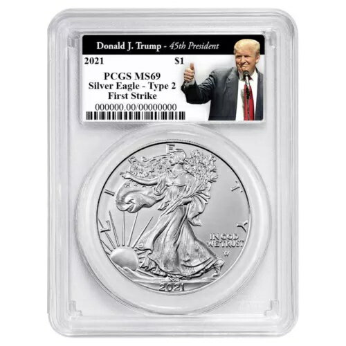 2021 年 $1 タイプ 2 アメリカン シルバー イーグル PCGS MS69 FS トランプ第 45 代大統領ラベル ...
