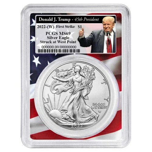 2022 (W) $1 アメリカン シルバー イーグル PCGS MS69 トランプ第45代大統領ラベル フラッグ F...