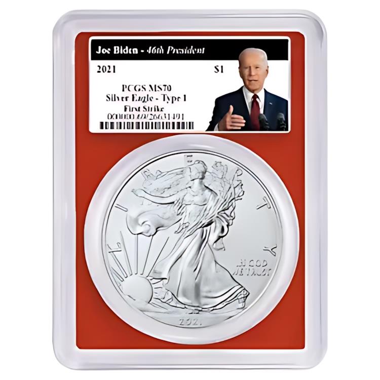 2024 $1 アメリカン シルバー イーグル PCGS MS70 バイデン 第 46 代大統領ラベル レッドフレーム