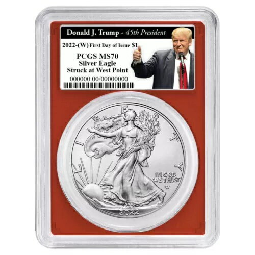 2022年 (W) 1ドル アメリカン シルバー イーグル PCGS MS70 トランプ第45代大統領ラベル レッドフレーム