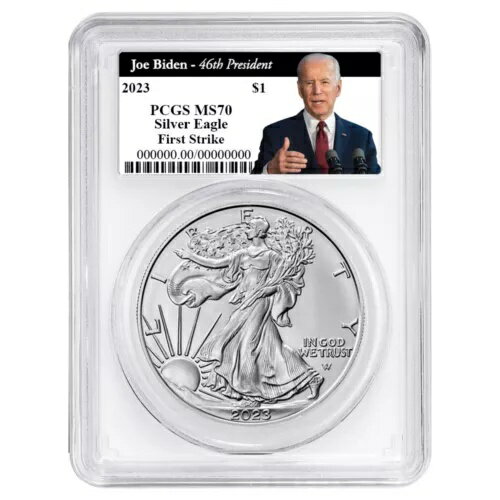 2023 年 1 ドル アメリカン シルバー イーグル PCGS MS70 FS バイデン第 46 代大統領ラベル ホワイト F...