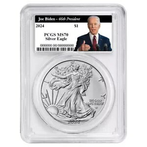 2024 年 $1 アメリカン シルバー イーグル PCGS MS70 FDOI バイデン第 46 代大統領ラベル ホワイト...