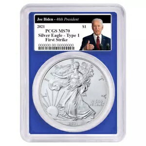 2021 年 $1 タイプ 1 アメリカン シルバー イーグル PCGS MS70 FS バイデン第 46 代大統領ラベル...