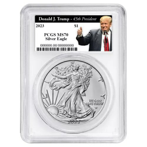 2023年 1ドル アメリカン シルバー イーグル PCGS MS70 トランプ第45代大統領ラベル ホワイトフレーム