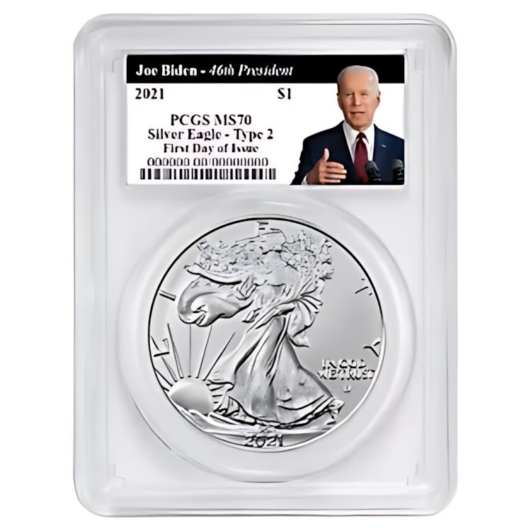 2021 $1 Type 2 American Silver Eagle PCGS MS70 FDOI Biden 46th President Label商品についてPCGS認証2021年コインアメリカンイーグルユニットあたりの貴金属含有量 1 オンスグレード MS 70ブランド/造幣局 米国造幣局繊度 0.999製造国/地域 米国構成シルバー