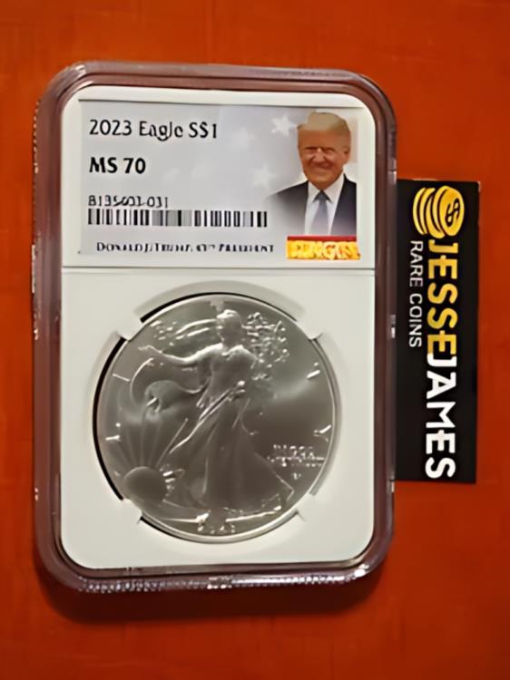 2023 $1 アメリカン シルバー イーグル NGC MS70 ドナルド J. トランプ 第 45 代大統領ラベル