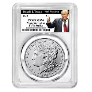 2024 $1 モーガン シルバー ダラー PCGS MS70 FS トランプ第 45 代大統領ラベル