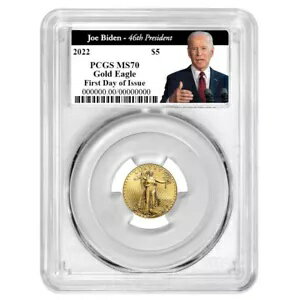2022 $5 アメリカン ゴールド イーグル 1/10 オンス PCGS MS70 FDOI バイデン第 46 代大統領ラベル