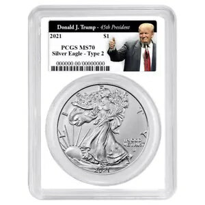2021 $1 タイプ 2 アメリカン シルバー イーグル PCGS MS70 トランプ第 45 代大統領ラベル ホワイト...