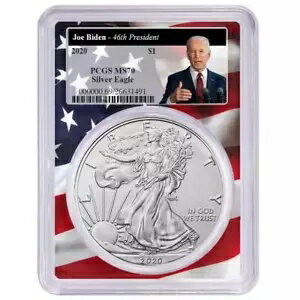 2020 $1 アメリカン シルバー イーグル PCGS MS70 バイデン 第 46 代大統領ラベル フラグ フレーム
