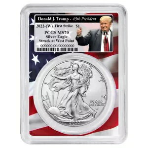 2022 (W) $1 アメリカン シルバー イーグル PCGS MS70 トランプ第 45 代大統領ラベル レッドフレーム