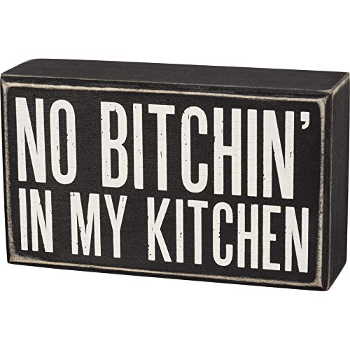 【中古】【輸入品・未使用】Primitives by Kathy 木製ボックスサイン - No Bitchin' in My Kitchen ブラック 6x3.5x1.75