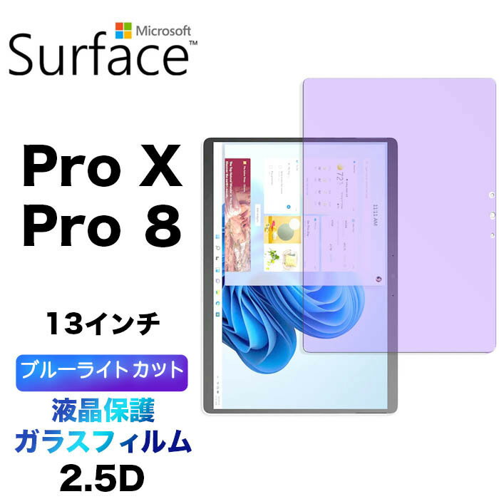 ブルーライトカット 液晶保護 Surface Pro 8 pro X タブレット 13インチ 13型 ガラスフィルム 強化ガラス 2.5D 画面保護 液晶保護 飛散防止 指紋防止 硬度9H クリーナーシート付き pro8 prox プロ エイト テン サーフェス Microsoft surfacepro8 surfaceproX
