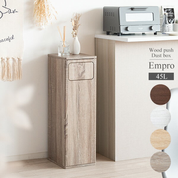 ダストボックス Empro(エンプロー) ゴミ箱だと分かりにくいスタイリッシュなデザインでお部屋に馴染む、木製プッシュ式ダストボックス『Empro(エンプロー)』。 臭いが漏れにくく押すだけで簡単に捨てられるプッシュ扉式。ゴミ袋の着脱も簡単な前扉があり、利便性もバツグンです。 幅25cmとスリムタイプなので省スペースでキッチンやカウンターの隙間に置けます。場所を選ばないデザインでリビングやデスク、寝室にも最適。 商品名 木製プッシュダストボックス Empro(エンプロー) サイズ 幅25×奥行き30×高さ80cm 材質 合成樹脂化粧パーティクルボード(塩化ビニル) 備考 組立式(約30分)/対応ポリ袋:45L 配送について ※こちらの商品はメーカー直送の為、代引でのお取扱いができません。 ※メーカー在庫の変動によりご注文時に商品をお手配できない場合もございます。 ※北海道・沖縄・離島の場合、別途送料が必要です。 ※お時間指定を頂きました場合は、配送伝票にその旨を記載させて頂きますが、配送状況などによってはご希望にそえない場合もございます。予めご了承下さい。 その他ご注意 お客様からのご注文後、メーカーに在庫の有無を確認・発注させて頂きます。 ご注文が集中した場合など、注文できる状態であってもすでに売り切れである場合がございます。 承ったご注文は可能な限りお届けするよう努めておりますが、やむを得ず入荷をお待ち頂く場合や、お届けできない場合がございます。予めご了承下さい。 お届けが遅れる場合や、お届けが出来ない場合はメールにて連絡させて頂いております。 当店からのご注文確認メールを必ずご確認ください。ダストボックス Empro(エンプロー) ダストボックス Empro(エンプロー) DB-800 ゴミ箱に見えないスタイリッシュなデザインでお部屋に馴染む、木製プッシュ式ダストボックス『Empro(エンプロー)』。 ニオイが漏れにくく押すだけで簡単に捨てられるプッシュ扉式でゴミ捨てがラクラク。 幅25cmとスリムタイプなので省スペースでキッチンやカウンターの隙間に置けます。 お部屋に馴染みやすいブラウン、ホワイト、ナチュラル、グレージュの4カラーをご用意。お好みでお選びください。 【商品サイズ】 幅25×奥行き30×高さ80cm 【材質】 合成樹脂化粧パーティクルボード(塩化ビニル) 【備考】 組立式(約30分)、対応ポリ袋:45L 【備考】 ●メーカー直送となります。 ●北海道・沖縄・離島への配送不可商品となります。 【その他ご注意点】 お客様からのご注文確認後、メーカーに在庫の有無を確認・発注させて頂きます。 ご注文が集中した場合など、注文できる状態であってもすでに売り切れである場合がございます。 承ったご注文は可能な限りお届けするよう努めておりますが、やむを得ず入荷をお待ち頂く場合や、お届けできない場合がございます。予めご了承下さい。