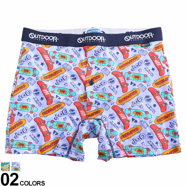 大きいサイズ メンズ OUTDOOR PRODUCTS (アウトドアプロダクツ) ストレッチ 吸水 スケボー柄 前開き ボクサーパンツ ボクサー パンツ コットン BTAE6011B102