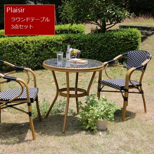 11月中旬入荷予定 ガーデンテーブルセット プレジール ラウンドテーブル3点セット ブラック (PLS-R70-3PSET-BLK) ビストロ セット ※北海道+3000円 【代引不可】