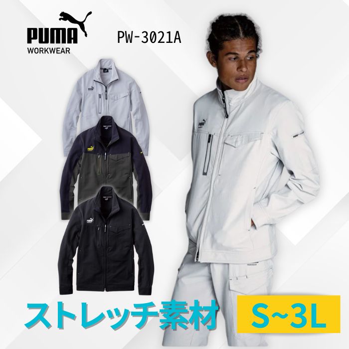 作業服 作業着 プーマ ワークウェア PUMA ワークジャケット PW-3021A ストレッチ ブルゾン 3L 大きめ 長袖 アウター メンズ 3l 大きめ 小さめ ブラック 黒 スウェット 寝巻 ジム 運動着 ジャージ トレーニングウェア スポーツウェア ランニングウェア ジャケット 上着 冬
