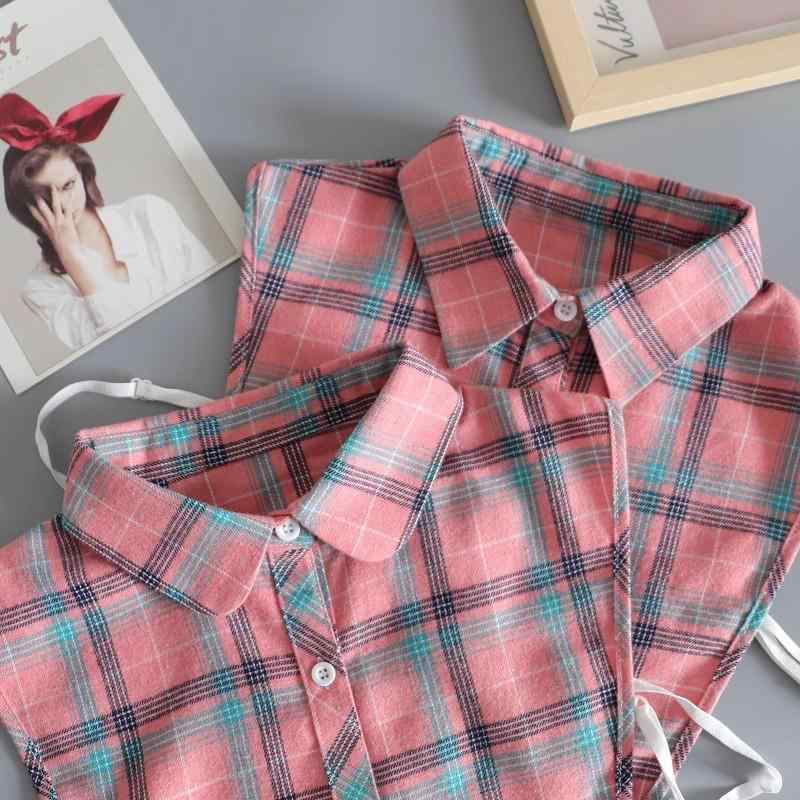 つけ襟 レディース 女性用 シャツ襟 フェイクシャツカラー ブラウス風 コットン 起毛 ネル素材 チェック柄 ピンク系 韓国ファッション ニット セーター 重ね着 レイヤード 秋冬 カジュアル 通勤 通学 オフィス 首元アクセント 万能アイテム