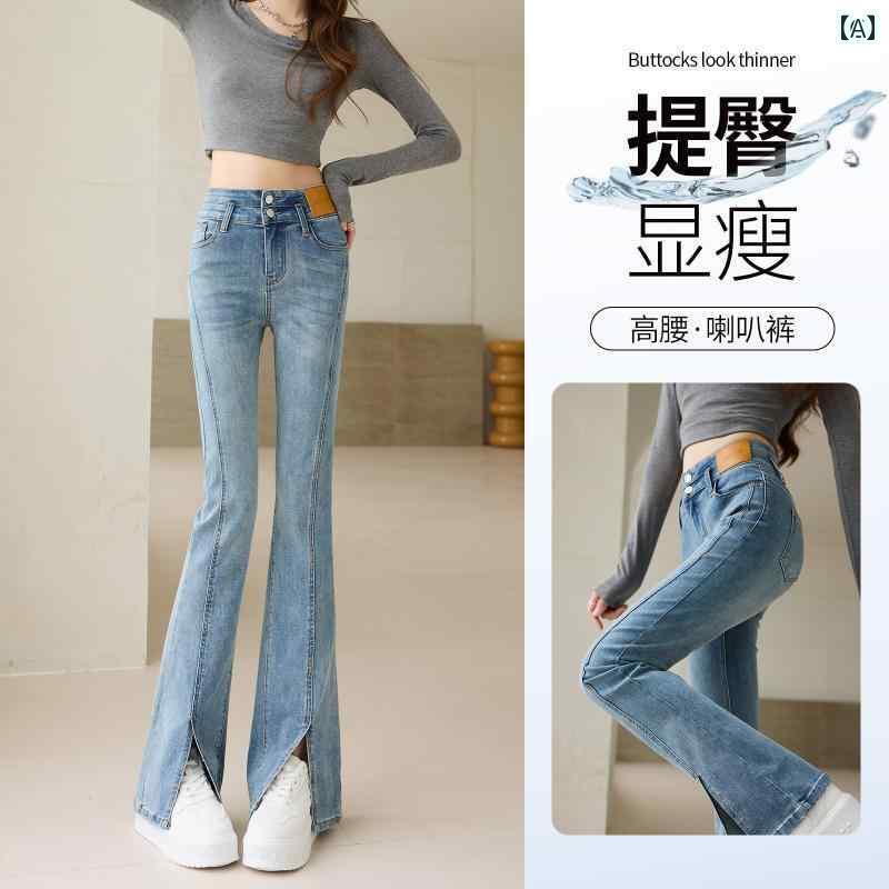 フレアパンツ レディース ブーツカット 女性用 スリット ジーンズ 2025 春秋 ホット スタイル ハイウエスト スリム 伸縮性 ベルボトム型 夏用 フレアパンツ