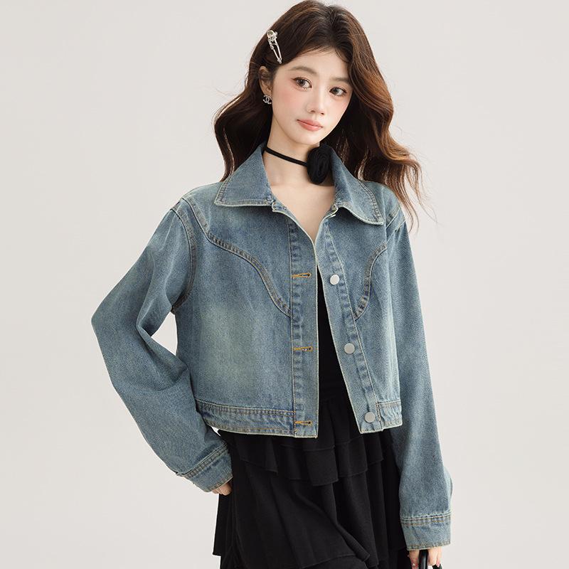 デニムジャケット レディース 春秋 韓国風 ファッション ウォッシュド ブルー ショート丈 アウター トップス デイリー カジュアル