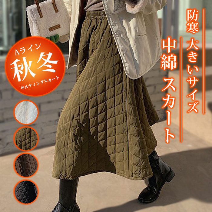 スカート 中綿 スカート レディース ボトムス ロング ミモレ丈 膝下 ひざ下 Aライン 防寒 大きいサイズ ゆったり 秋冬 キルティングスカート