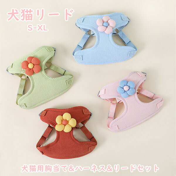 犬猫用胸当て&ハーネス&リードセット 4color 通気性 ペット胸当て ペットリード 牽引ロープ ベスト ドッグ/ネコ用品 ペットグッズ 引きひも お出かけ 花 S M L XL