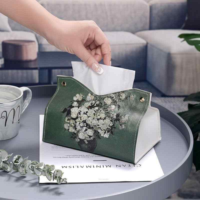 ティッシュケース 北欧風 レザー 革製 リビング 普段使い 車載用 サイドテーブル おしゃれ デザイン性 ティッシュカバー ボックス 防水 高級感 グリーン系