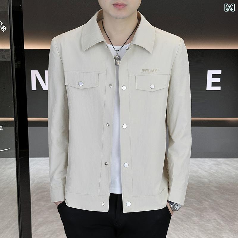 ジャケット メンズ 男性用 春秋 韓国風 トレンド カジュアル 薄手 ライトアウター 襟付き テーラード ゆったり ルーズフィット コーデュロイ ポリエステル オフホワイト ブラック カーキ 着回し 免アイロン