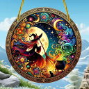 オーナメント ハロウィン 魔法使い 魔女 月の妖精 精霊 ペイント アクリル 円形 吊り下げ飾り ガーデン 庭 室内 壁 ドア 装飾品 秋 イベント パーティー かわいい ユニーク(x2)