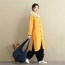 トレンチコート レディース 綿麻 リネン ロング丈 長袖 無地 中国風 禅服 茶服 盤ボタン ラウンドネック 羽織り アウター ゆったりサイズ レトロ 文芸風 カジュアル ブラック オレンジ ブルー ネイビー