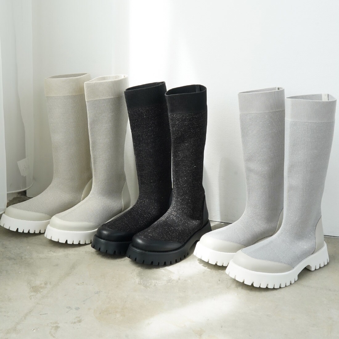 【撥水】Quasar/クエーサー(Beige)ラメニットロングソックスブーツ