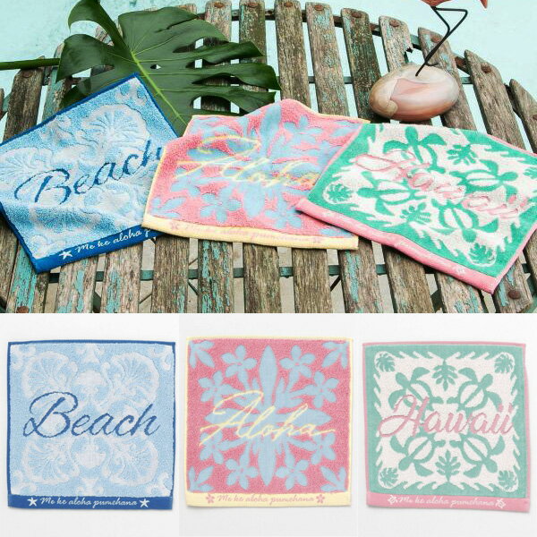ハンドタオル ハンカチ タオル ハワイアン キルト レディース メンズ ハワイアン雑貨 ファッション 小物 日用品 ホヌ ウミガメ シェル 貝殻 マリン 海 ピンク ブルー グリーン ギフト プレゼント ハワイ hawaii aloha おしゃれ かわいい