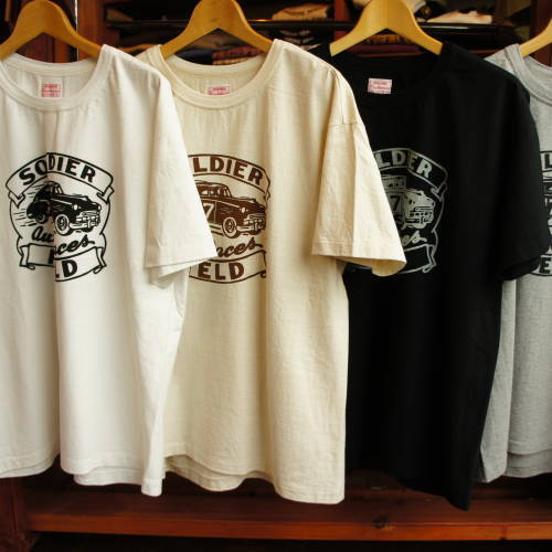 スウェットに定評のある 知る人ぞ知るビンテージウェアの復刻ブランド クッシュマン (CUSHMAN)より・・・ SPL PRINT TEE スペシャルプリントTeeです。 昨年度のリリースから着心地の良さで好評をいただいています 空紡14番単糸(リサイクル糸)を使用した丸胴の度詰め天竺Teeです。 空紡糸の特徴である生地のガサ感に加え、リサイクル糸の使用により凹凸感、 そして度詰めによるハリがあり、風合いのある中肉厚のボディの SPECIAL TEE の2024 のプリント TEE の紹介です。 ★空紡糸とは、空気の流れで撚りを加えて糸にする オープンエンド紡績機で作られます。 糸に適度な空気を含む事により、生地にガサ感があるのが特徴で アメリカのTeeシャツの多くはオープンエンドによるものです。 縫製ミシン、縫製技法など1940年代のヴィンテージTeeを参考にし、 限りなくヴィンテージに近づけた製品です。 衿リブは3本針で衿強度を落とさずストレッチ性を出す為、 ボディにステッチを1本落とした3本針1本落としの縫製仕様です。 下糸は、綿より伸縮性のあるシルク糸の太番手糸(綿 8番手相当)で 衿が伸びにくくなっています。 地縫いはシングルロック(1本針)仕様でゴロつきにくいシームになっています。 裾引き(天地縫い)は2本糸ロック(針糸とルーパー糸の長さが近いループ形状)の為、 伸びにくい綿糸でもストレッチ性を確保しています。 ※ 裾両サイドの各2箇所のランドリーホールはついていません。 1940’S ~ 1960’S 後半までイリノイ州シカゴの ソルジャーフィールドというスタジアムで行われていたオートレースの 1950’S のレースがモチーフです。 こちらのプリントもボディカラーにより 水性染込と半ラバーによりプリントされています。 ★ワンウォッシュ済み納品です。 ●日本製 ●素材:コットン100% ●サイズ 着丈/ 身幅/ 肩幅/ 袖丈 【S】63cm/48cm/43cm/19.5cm 【M】65cm/51cm/45cm/20.5cm 【L】68cm/54cm/48cm/21.5cm 【XL】71cm/57cm/51cm/22cm ※多少の誤差はございますので、ご了承ください。 ※商品の色は、ディスプレイの種類や状態などで、実際の色と 異なる場合があります。 ※メーカーと在庫を共有している為、商品の発送までにお時間を 頂く場合がございます。また他サイトでも販売しておりますので、 商品の売り違いが発生した際は、キャンセルをさせていただく場合も ございますのでご了承ください。