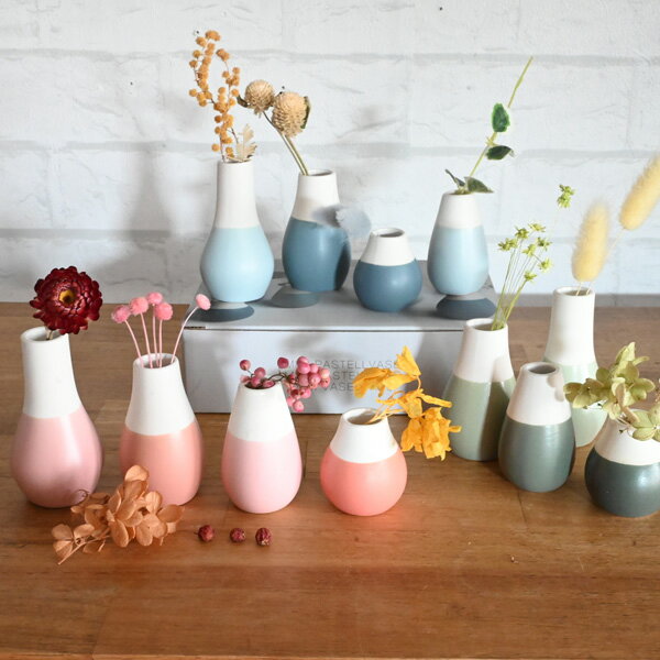 『 レダー パステルフラワーベース 4個セット 』( 一輪挿し フラワーベース 花器 花瓶 花 ドライフラワー グリーン 植物 飾る 収納 プランター リビング 玄関 トイレ インテリア 雑貨 おしゃれ かわいい カラフル 小さい 小振り 小型 ツートン 優しい色 rader ドイツ)