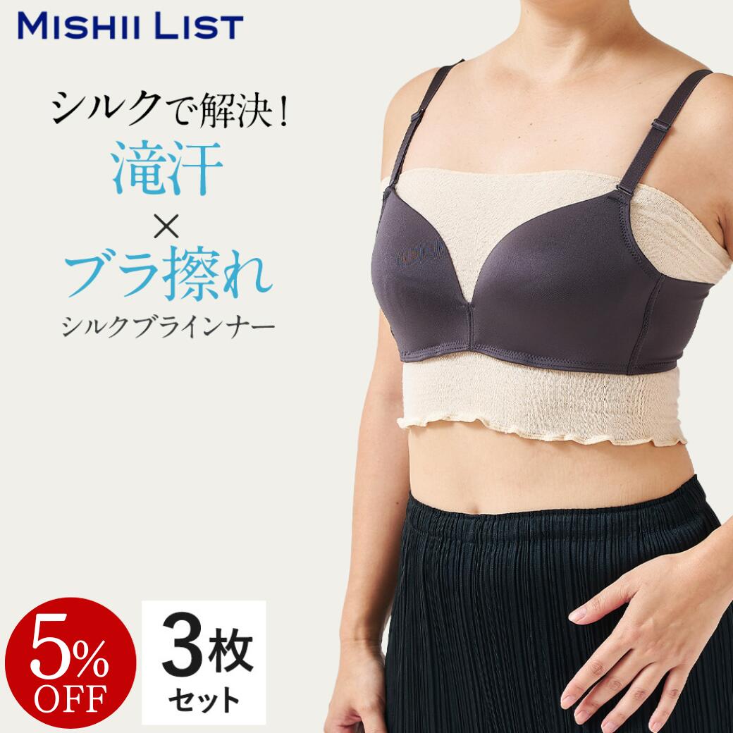 ブラインナー 3枚セット 5%OFF シルク ブラカバー 汗取り 汗とり 汗取りインナー 下乳 秋 冬 汗対策 蒸れにくい 蒸れ対策 ブラトップ チューブトップ 谷間隠し かぶれ対策 レディース 女性 快適 インナー 温活 放湿 吸湿 ブラジャー 薄手