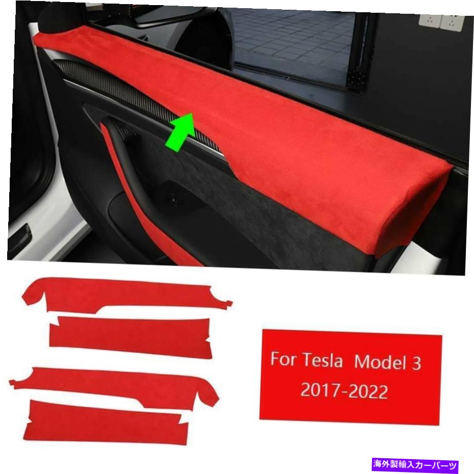Dashboard Cover テスラモデル3 2017-2022レッドスタイルアルカンタラインナードアパネルストリップトリム4PCS For Tesla Model 3 2017-2022 Red Style Alcantara Inner Door Panel Strip Trim 4pcs