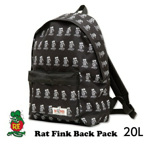 ラット フィンク バックパック 20L リュック メンズ Rat Fink デイバッグ 黒 総柄 大容量 ムーンアイズ リュックサック 通学 通勤 ジム スポーツ 大人 軽量 a4 バッグ カバン 鞄 アメリカン雑貨 アメリカ雑貨 アメカジ