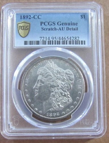 1892cc モーガン シルバー ダラー - PCGS AU 詳細スクラッチ - 難読日付 - 送料無料!!
