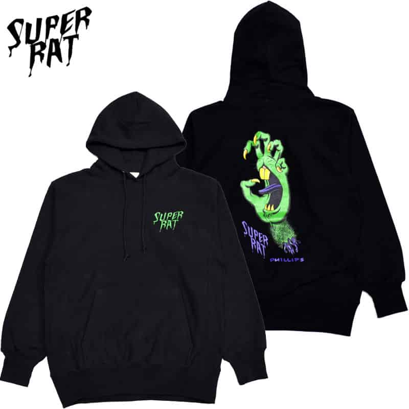 送料無料 スーパーラット SUPER RAT RAT HAND GR PULL OVER HOOD ( ブラック 黒 BLACK ) スーパーラットフーディー SUPER RATフーディー パーカ スウェット ハンド WARP別注