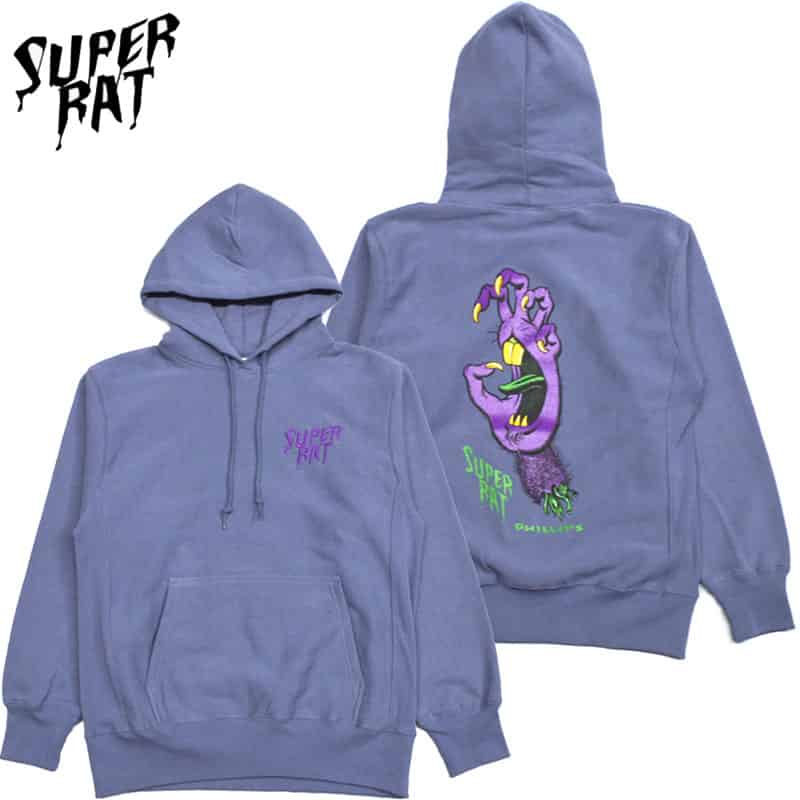 送料無料 スーパーラット SUPER RAT RAT HAND GR PULL OVER HOOD ( ブルー BLUE ) スーパーラットフーディー SUPER RATフーディー パーカ スウェット ハンド WARP別注