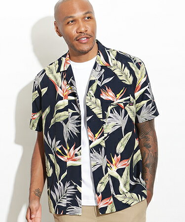 33.YELLOW 54.NAVY 75.RED ▼製品説明 【by CAMBIO】 --CAMBIO -- リーフ総柄のレーヨンアロハシャツ。大判の柄使いが夏らしく、暑い日本の夏に映える色味がより一層季節感を演出してくれます。シャツのパターンは50'sをイメージした開襟パターンを採用。ゆとりを持たせた身幅に落ちすぎない肩のシルエットで程よいルーズさを持たせたサイズ感に仕上げ、ヴィンテージライクな表情を醸し出しています。生地は風に当たるとヒラヒラと動きの出やすく、サラッとした質感のレーヨン100%素材を使用。とろみ感のある生地なので肌触りがよく、風通しのよい開襟デザインを採用することで暑い夏にも気持ちのいい着心地を与えてくれます。 【ROTAR(ローター)】アイテム一覧はこちらから ▼寸法(平置き) Mサイズ:着丈72cm/身幅117cm/肩幅49cm/袖丈24cm/Lサイズ:着丈74cm/身幅121cm/肩幅51cm/袖丈25cm/XLサイズ:着丈76cm/身幅125cm/肩幅54cm/袖丈26cm/ ※製造元提供。 素材 R100%