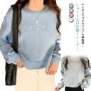 送料無料 『着映えるプリント』 トップス レディース スウェット トレーナー ショート丈 カットソー プルオーバー スウェット エンボスロゴ 長袖 パーカー オシャレ クルーネック 無地 長袖トレーナー カジュアル ホワイト グレー ピンク ブルー