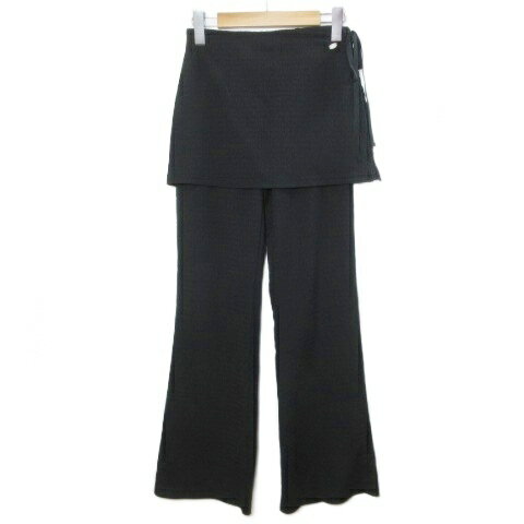 【中古】タナット TANNAT 美品 Layered light wrap pants レイヤード ラップパンツ 韓国 セミフレア ロゴプレート ウエストゴム フリーサイズ 黒 ブラック /X レディース 【ベクトル 古着】 251105