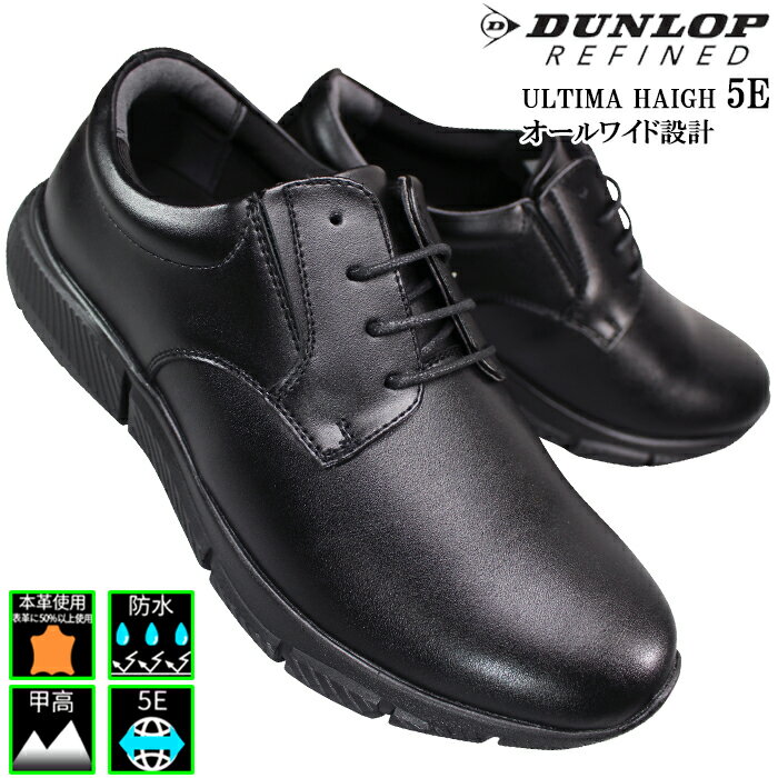 ダンロップ リファインド 防水ビジネスシューズ DR-6300 ブラック 24.5cm〜27cm メンズ ビジネス靴 黒靴 紐靴 紳士靴 履きやすい靴 スリットゴム入り 5E 幅広 ゆったり ワイド 晴雨兼用 雨の日 靴 DR6300 DUNLOP REFIND