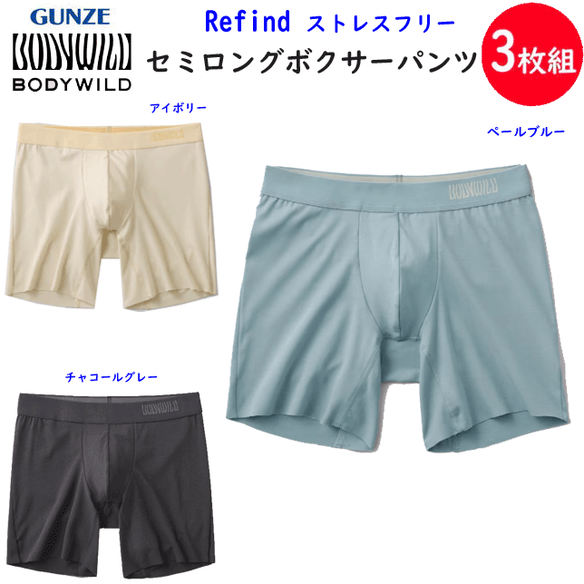 3枚組 まとめ買い グンゼ ボディーワイルド セミロングボクサーパンツ ボクサーパンツ Refind GUNZE BODY WILD メンズ 下着 紳士 肌着 裾きりっぱなし ボクサー ボクサー 父の日 プレゼント BWD005A 楽天 通販 送料込み