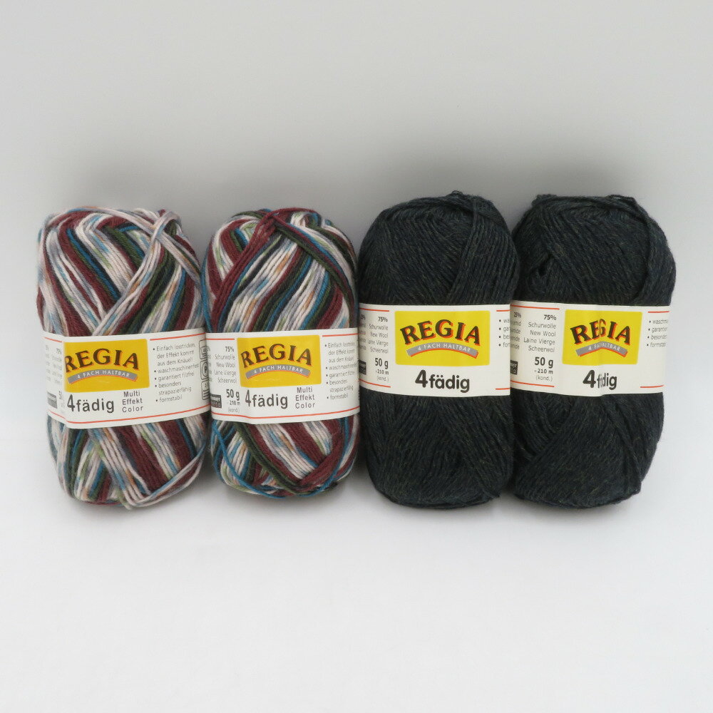 Regia (レギア) 毛糸 REGIA レギア 4-ply 4fadig 4玉セット 1053番色 5375番色 50g玉巻 210m 旧ラベル ソックヤーン【中古】